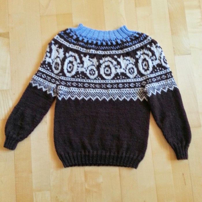 Strikkeoppskrift for Mariusgenser med rundfelling til barn